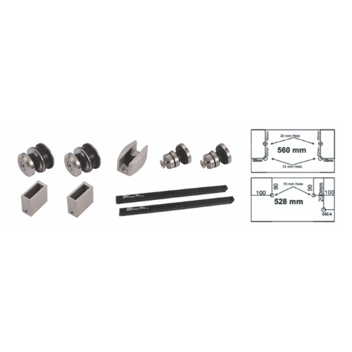 | Item Description | 2 Pipe Bracket, 1 Door Guide, 2 Roler, 2 Connector For Fixed Glass 2Pcs., So Close Damper, Suitable for : 10 to 12mm. Glass |